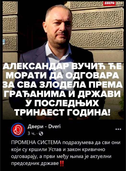 > “PROMENA SISTEMA podrazumeva da svi oni koji su kršili Ustav i zakon krivično odgovaraju, a prvi među njima je aktuelni predsednik države“ Promena sistema podrazumeva da svi oni koji…